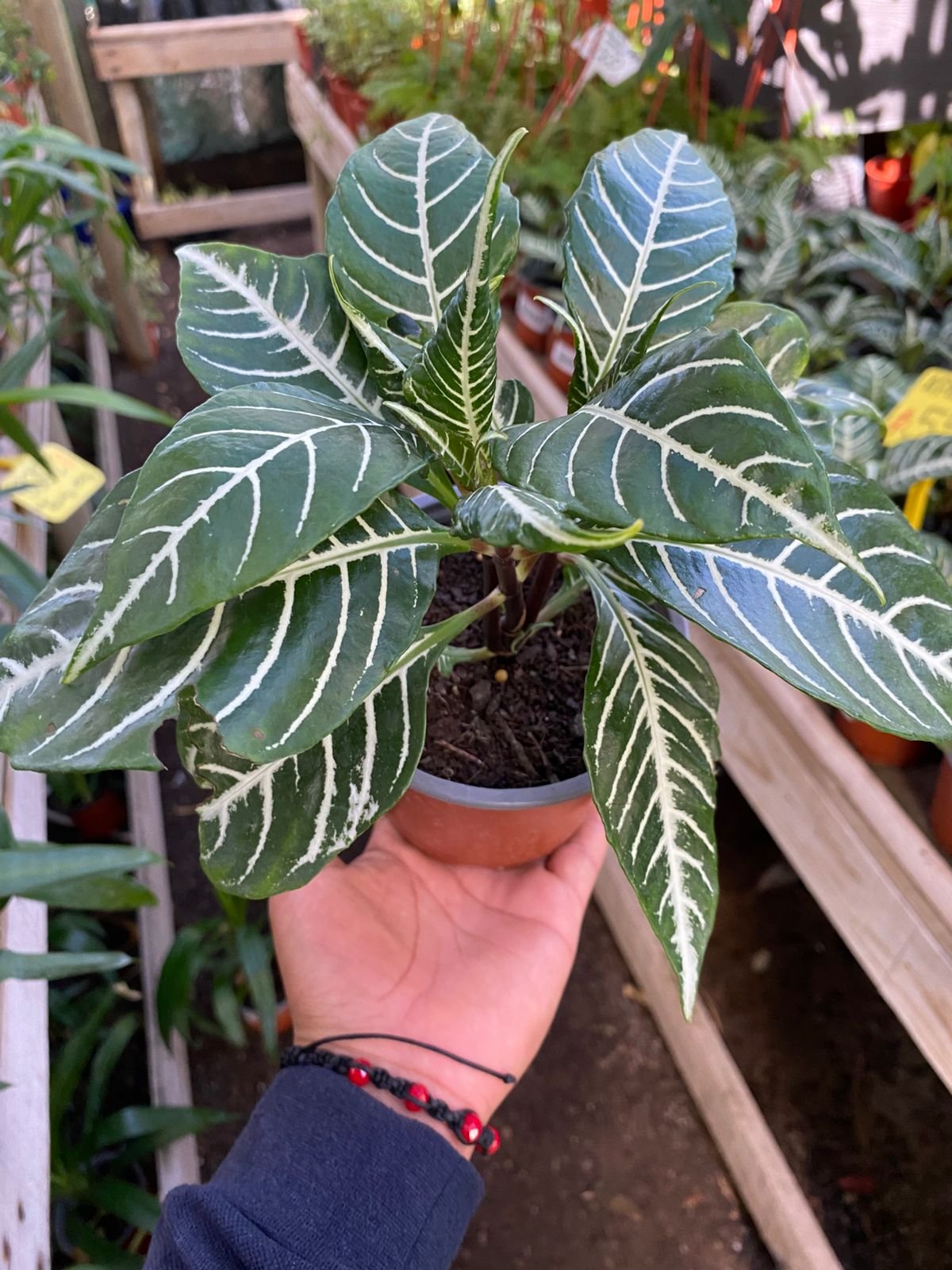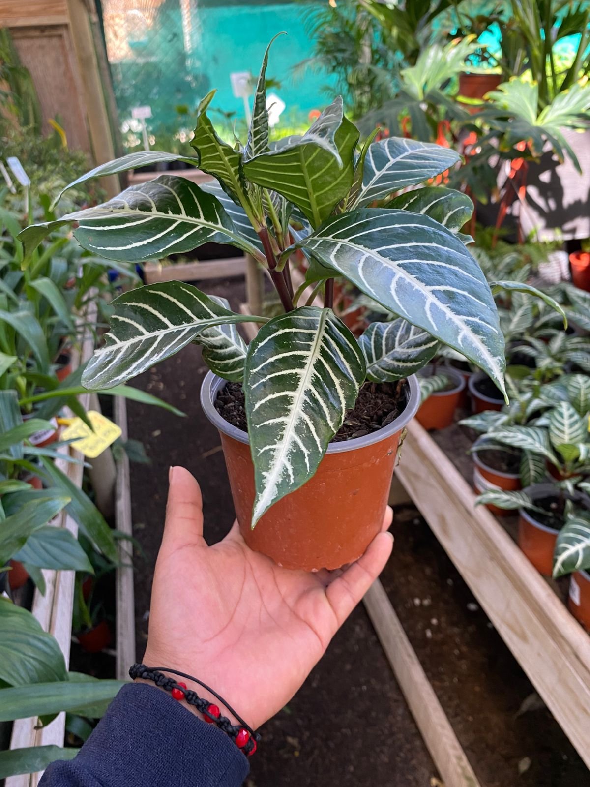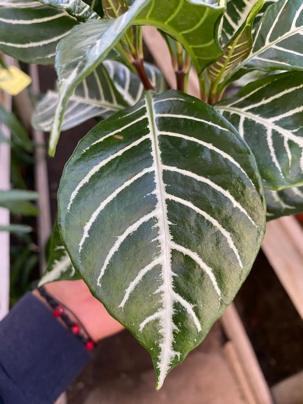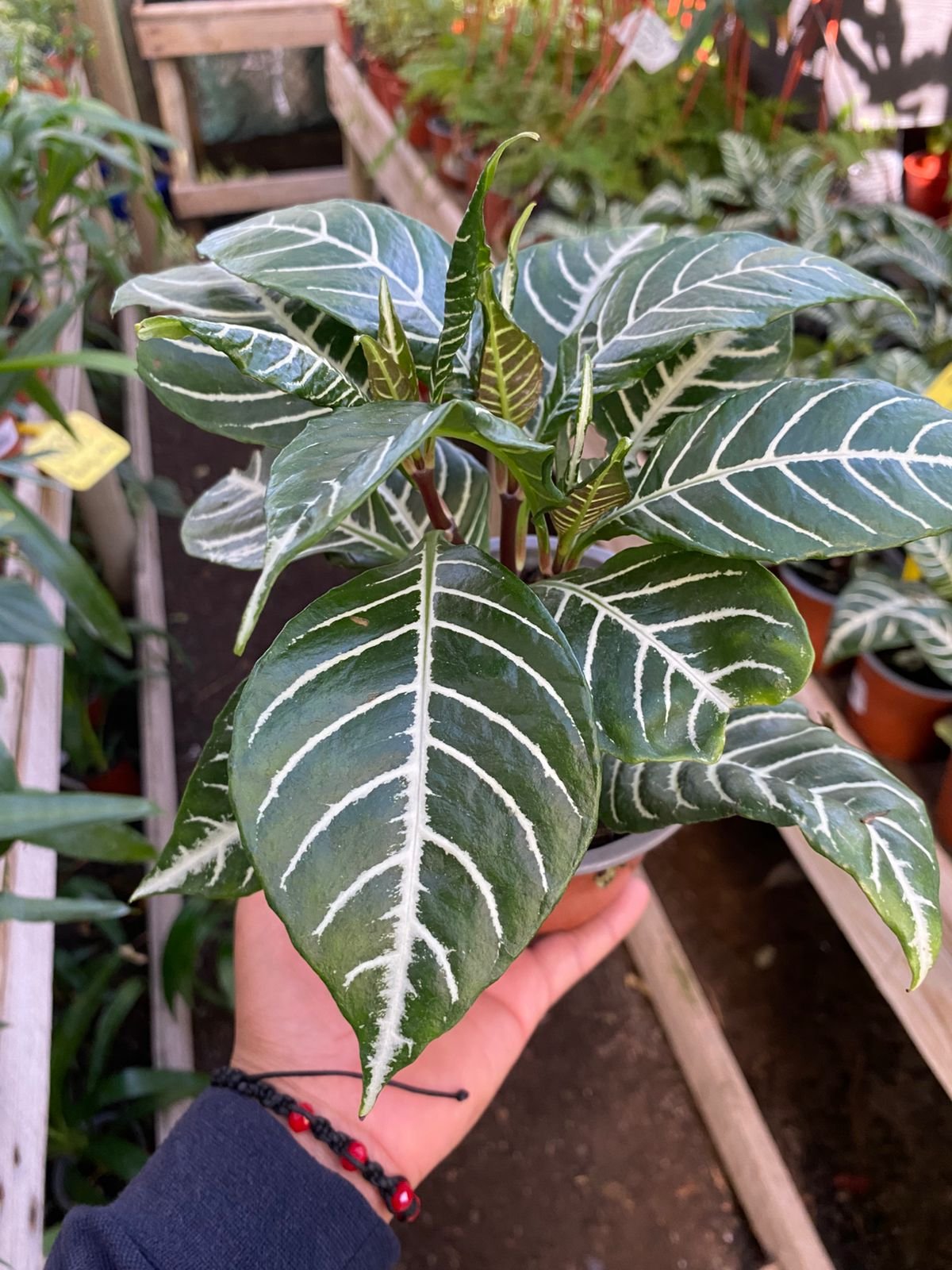 Planta de interior exótica y muy decorativa, destacada por su follaje verde brillante con nervaduras claras y su atractivo porte ornamental.