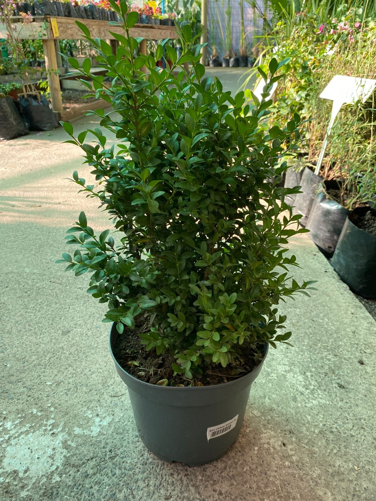 Boj verde decorativo de apariencia natural, ideal para dar un toque elegante y fresco a espacios interiores y exteriores sin necesidad de mantenimiento.
