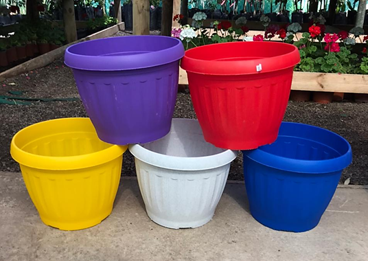 Aquí te tenemos un pequeño macetero ovalado cuyas medidas corresponden a 30 de ancho por 26 de alto, y tenemos en distintos colores esperando por ti.