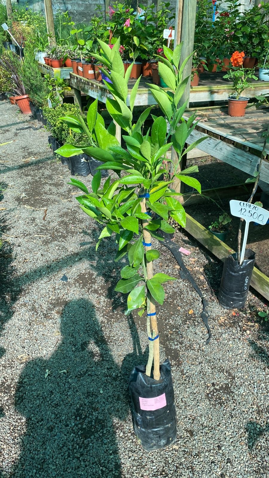 Árbol frutal de excelente producción, apreciado por sus naranjas dulces y jugosas. Ideal para huertos familiares y jardines, tanto en suelo como en maceta grande.