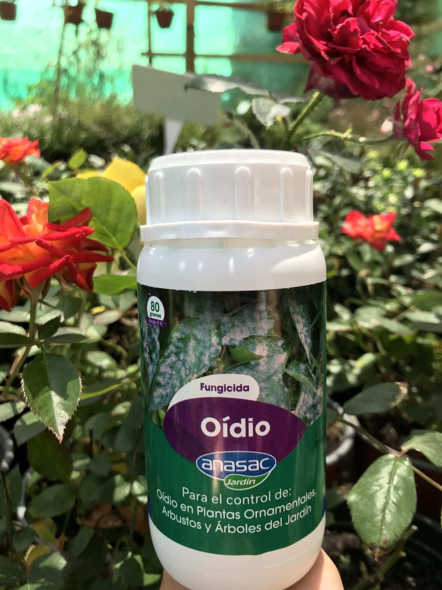 El Oídio fungicida controla y además previene eficientemente el hongo oídio que ataca principalmente rosales, frutales, begonias, entre otras plantas de jardín.