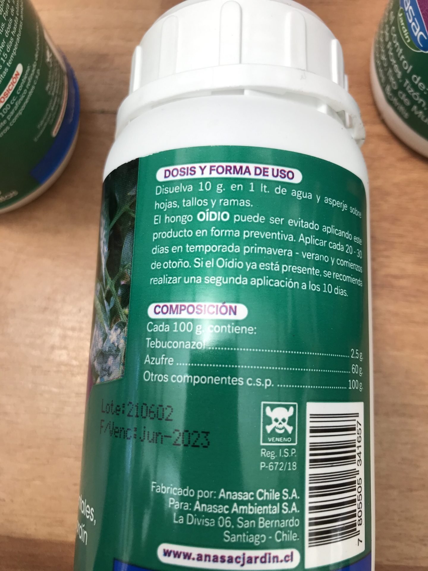 Para control del hongo disuelve 10 g en 1 lt de agua y luego asperja en forma uniforme sobre hojas, tallos y ramas cada 10 días.