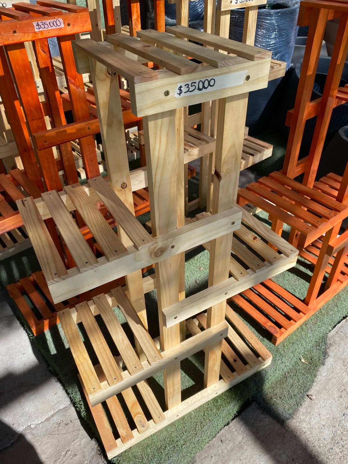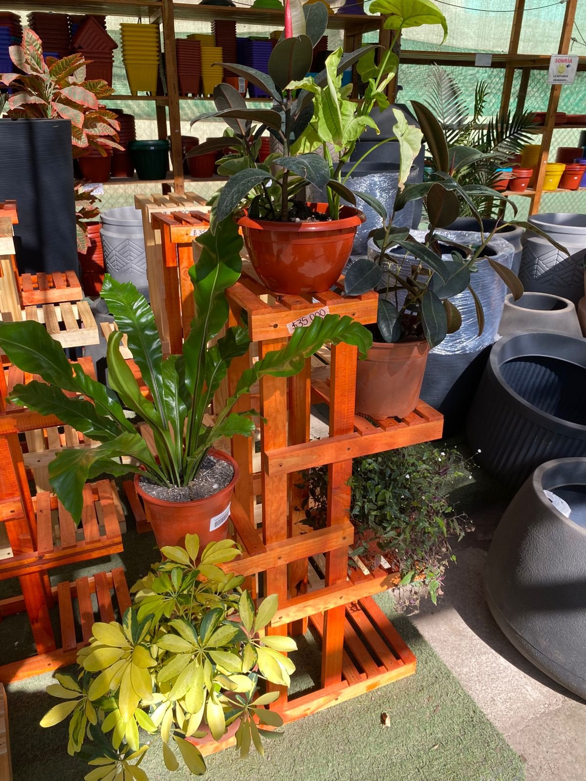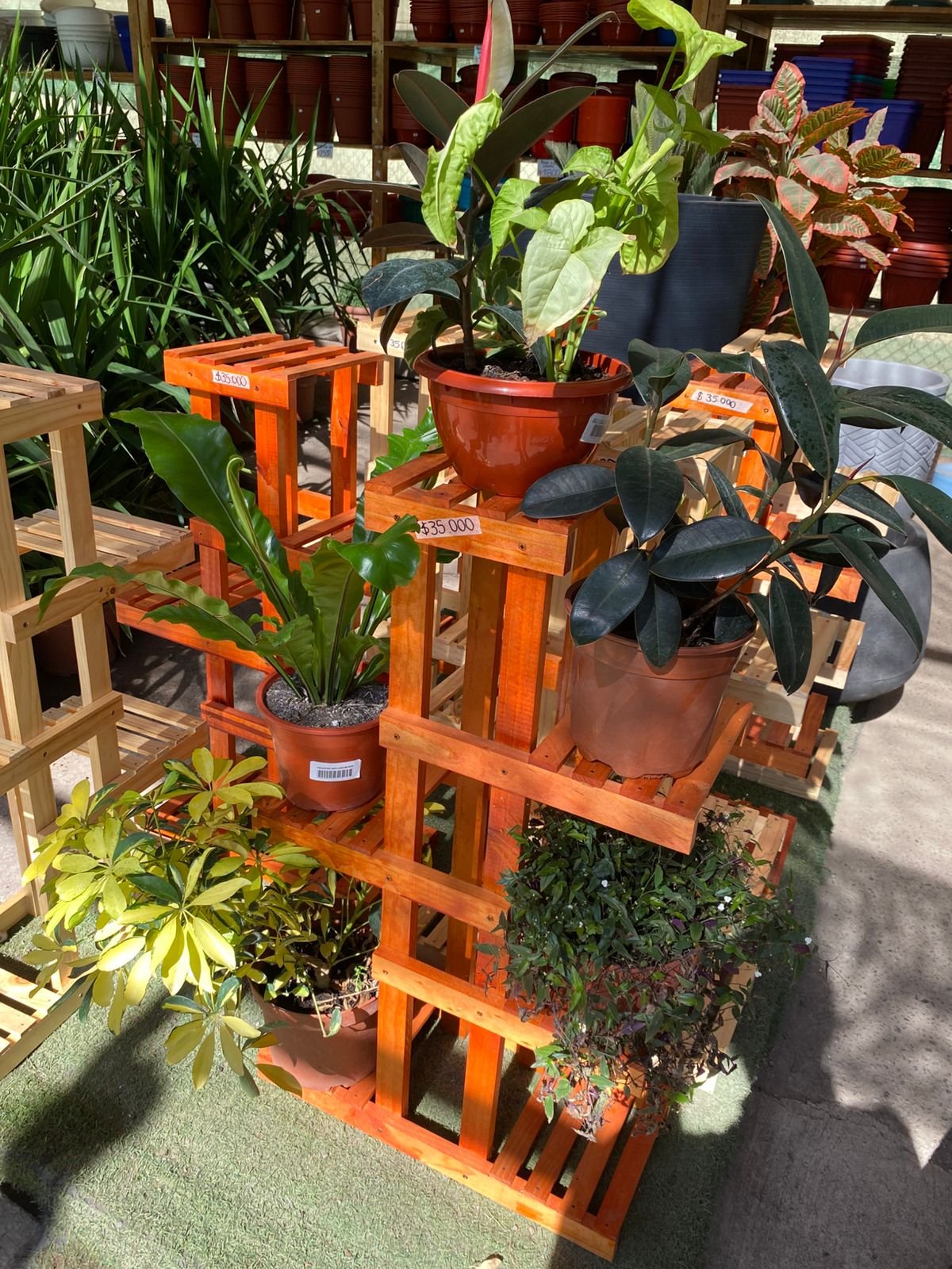 Su estructura permite una correcta ventilación y exposición de las plantas, convirtiéndola en una excelente opción para resaltar macetas decorativas, suculentas o plantas de interior. Perfecta para hogares, terrazas, oficinas o viveros que buscan combinar funcionalidad, diseño y presentación.